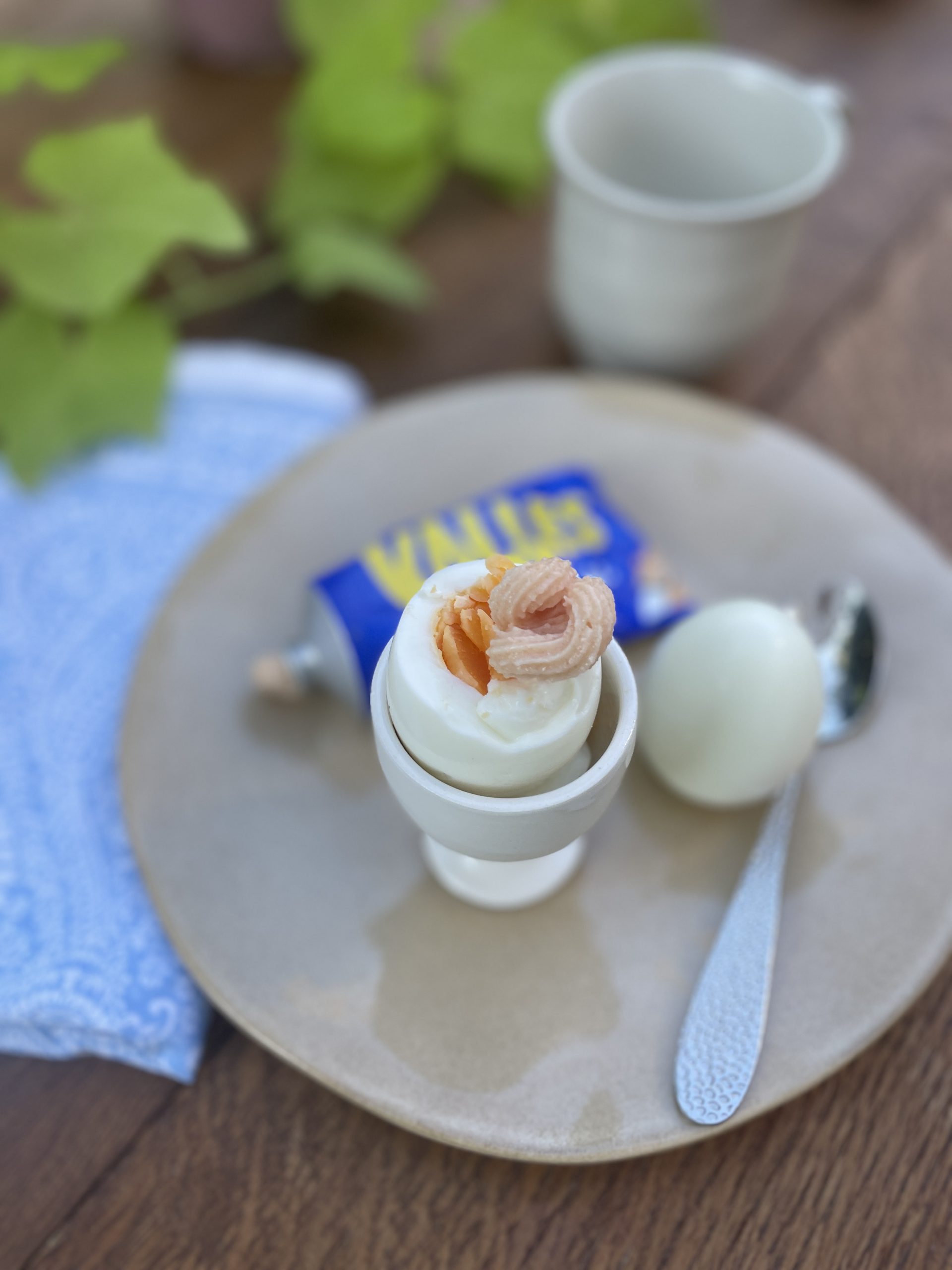 Krspiga salladssnittar med saffranscrème och räkor – 8 portioner