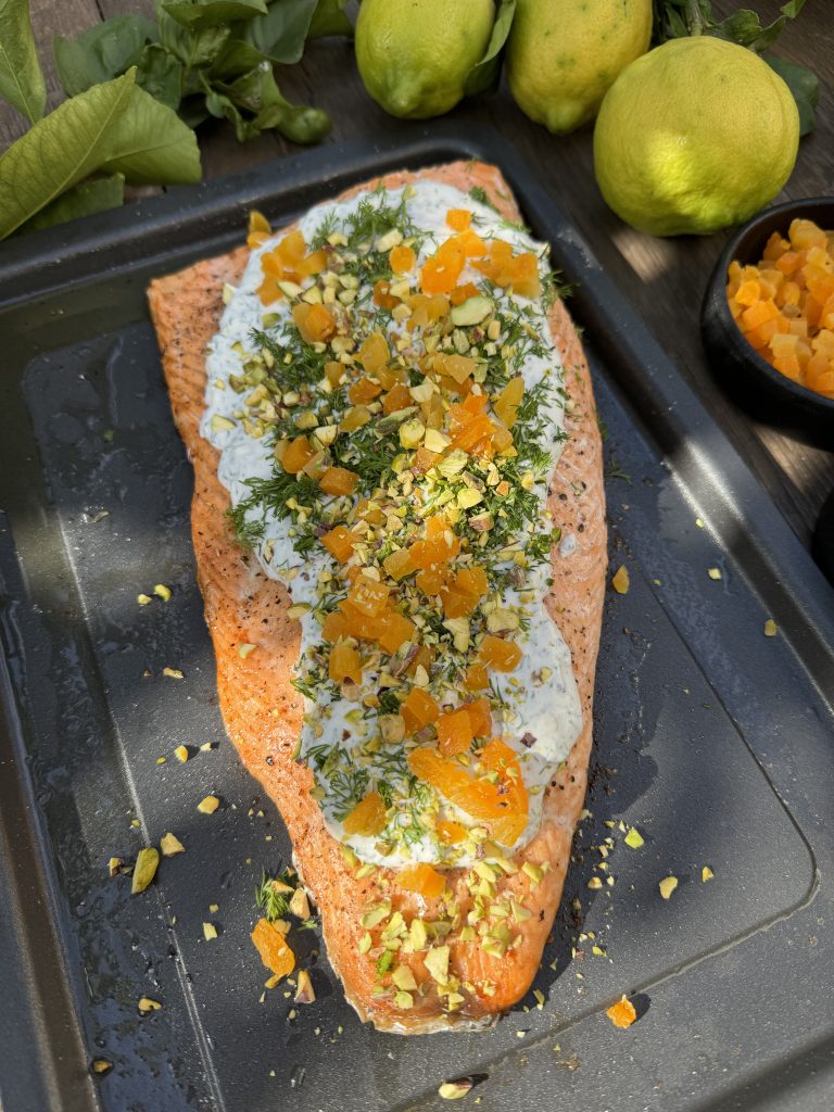 En somrig lax med aprikostopping!