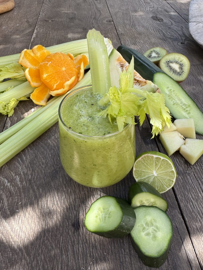 En vacker grön drink som passar utmärkt för en energifylld start på dagen!