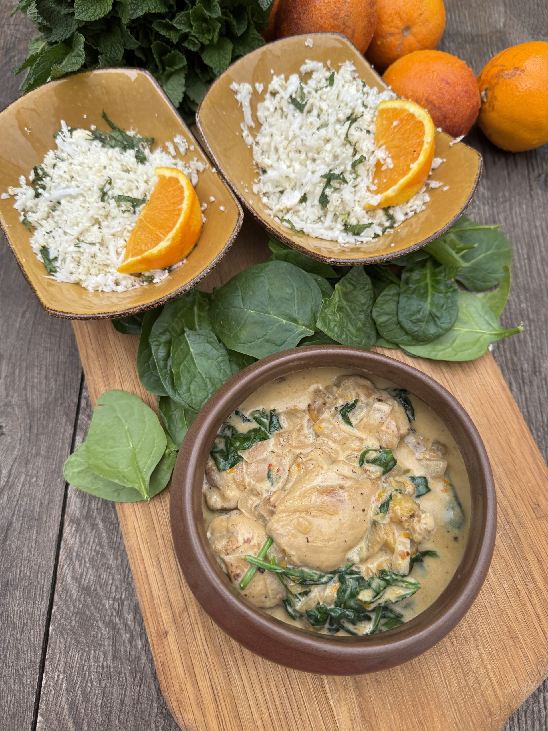 Apelsinen ger en fräsch touch i den här kycklingrätten!